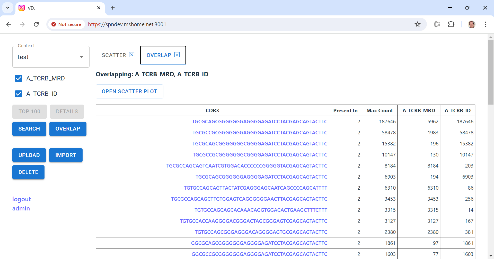 A key feature of the tool is to compute the “overlap” between a set of samples from the same patient — which sequences appear in more than one sample, and at what frequency. This is a challenging computation to do efficiently because you have to compare every sequence in every sample. The best way uses two steps: (1) sort the sequences in each sample, then (2) compare them in order starting from the front. That part of the code is here.
